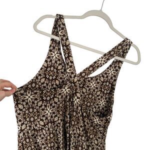 J Jill Kona St Cross Back Brown Floral Midi Dress Boho Preppy NEW Womens Large