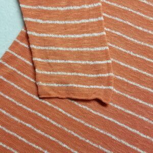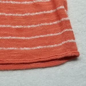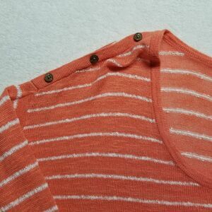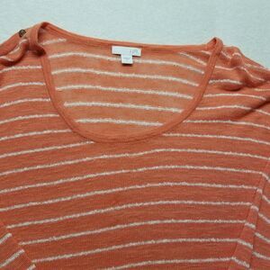 J Jill Womens Size Large Sweater Linen Blend Orange with White Stripes Button Detail on Shoulder Lightweight Transitional Coral Beach Coastal Preppy