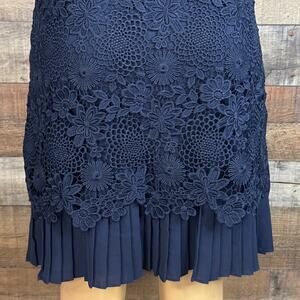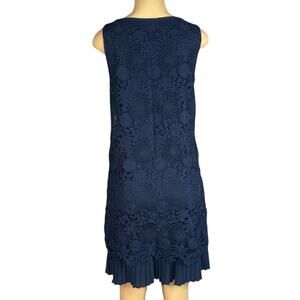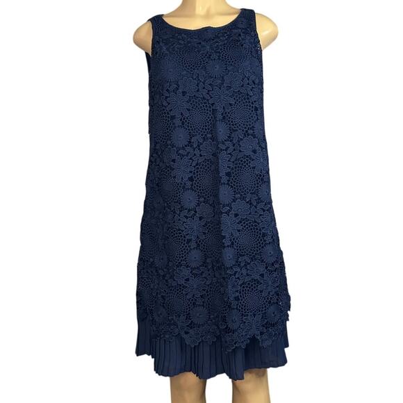 J. Jill Lace Overlay Dress Sleeveless Navy Blue Accordion Pleated Size Small