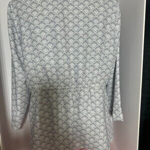 J Jill Ladie's Fitted Blouse Wearever Collection Size Small V Neck 3/4 length sleeves, shell pattern