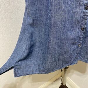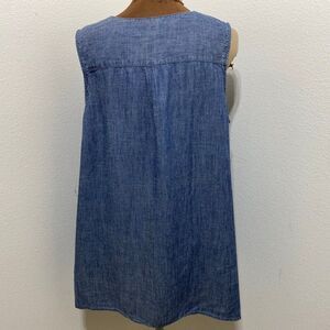 J Jill Large Blue Sleeveless Chambray Linen Blend Shirt Size Large