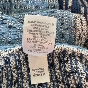 J Jill Large Cardigan Striped Long Sleeve Stretch V-Neck Patchwork Striped Blue