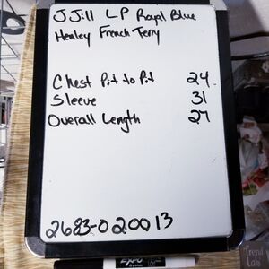 J Jill Large Petite Top Sweatshirt Royal Blue French Terry V Neck Henley Classic
