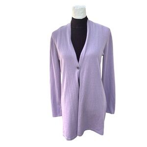 J Jill Lavender Open Front Light Weight Wool Blend Long Line Cardigan Size Small