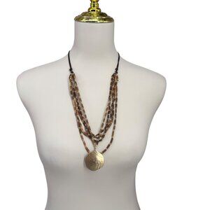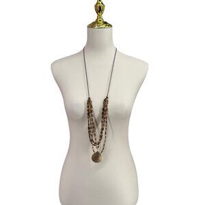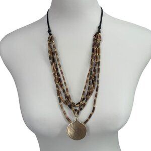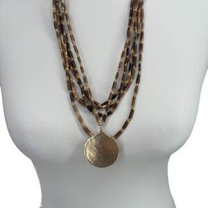 J. Jill Layered Beaded Necklace Hammered Gold Tone Pendant Cord Adjustable