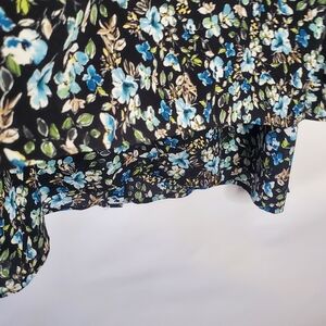 J. Jill Layered Floral Tunic Size 2X. Pretty, relaxed fit, blue floral print tunic length top with a subtle layered hem and side slits for a bit of movement.