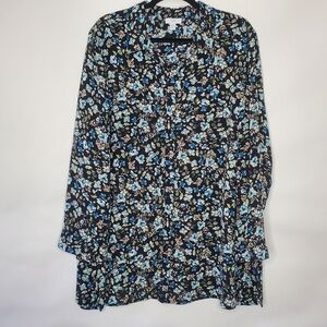 J. Jill Layered Floral Tunic Size 2X Long Sleeve Button-up Relaxed Shirt Fall