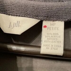 J. Jill Leather & Wool Blend Knit Button Down Cardigan Sweater Jacket Gray MP