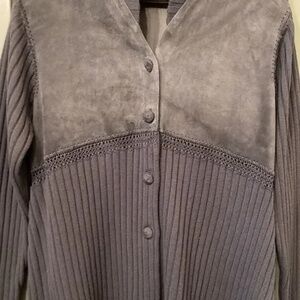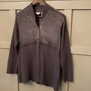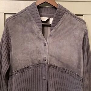 J. Jill Leather & Wool Blend Knit Button Down Cardigan Sweater Jacket Gray