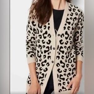 J. Jill Leopard Print Button Up Relaxed Fit Soft Cardigan Sweater Size S