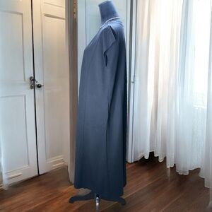This J. Jill A-Line dress is designed in a size Large with a V-Neck and a pullover closure. Made of double-face jersey fabric in black, it features a comfortable fit with cap sleeves and pockets, perfect for various occasions like travel, parties, casual outings, and workwear. The dress is a midi length and includes stretch material for added comfort, making it suitable for all seasons. It has a simple yet versatile design, ideal for a classic and casual wardrobe.