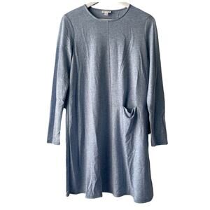 J. Jill Light Blue Luxe Tencel Crewneck Long Sleeve Knit Dress with Pockets - S