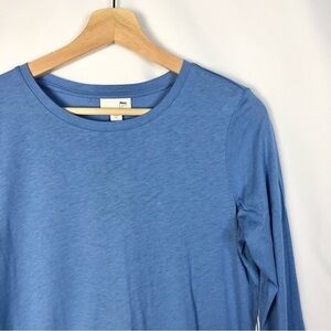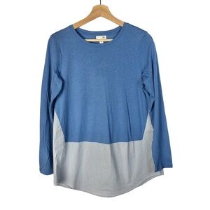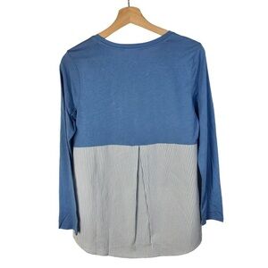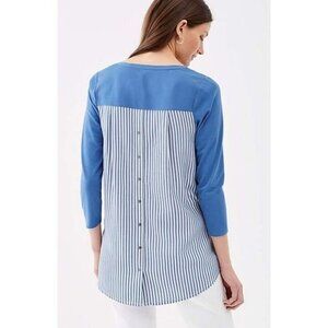 J. Jill Light Blue Mixed Media Crew Neck Lapis Button Back Blouse XS