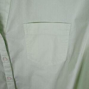 Excellent preowned condition. Light lime green long sleeve collared button up shirt. Hangs slightly longer in back. Button on cuffs. Cotton/polyester/spandex material. Approx. measurements: Shoulder to front hem 27", shoulder to back hem 30", pit to pit 24", sleeve from neck to sleeve hem 29". Size L.