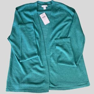 J. Jill Light Open-Front Linen Blend Cardigan COLOR: Aegean Size S NWT