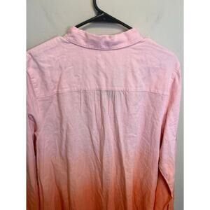 tags: j jill, linen, rayon, viscose, new, collared, button up, ombre, tie dye, pink, lightweight, casual, summer