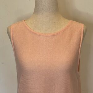 This pale pink tank by J. Jill is in excellent condition. The tank is in a gorgeous pastel pink. It is very soft and comfortable to wear. The top is sleeveless with a rounded neck. The bottom has an eyelash fringe detail all the way around. The perfect all season tank. Machine washable.