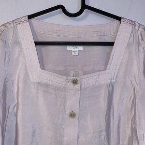 J. Jill Light Purple Square Neckline 3/4 Sleeve Button Front Blouse Size MP