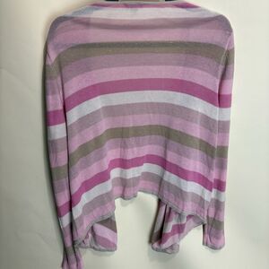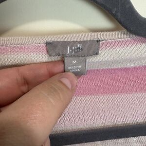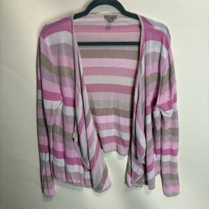 J. Jill Lightweight Cardigan Sweater Linen Cotton Open Front Pink Ombré Stripe M