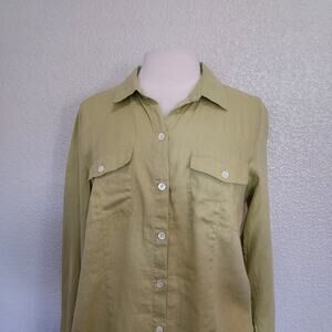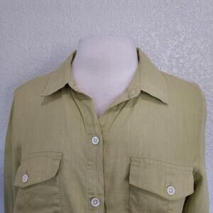 J. Jill Lime Green 100% Linen Long Sleeve Button Down Size M