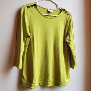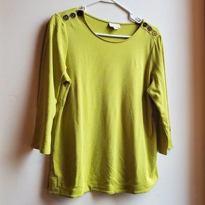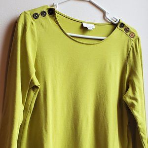 J. Jill Lime Green Boat Neck Jersey Size Small. Great color and in excellent condition. Buttons on shoulder for decoration.