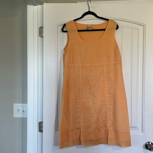 J Jill Linen Beaded Sleeveless Dress Size 14