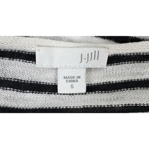 J. Jill Linen Blend Boxy Top Small Striped Black White 3/4 Sleeves Coastal Lagen