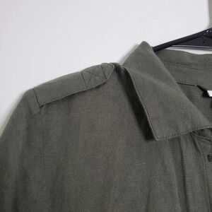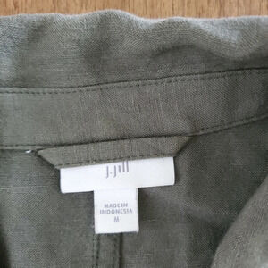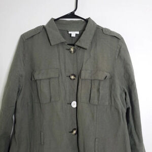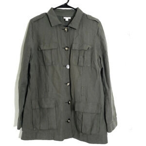 J Jill Linen Blend Caraway Safari Cargo Jacket Size Medium Trench Olive Green