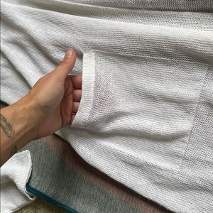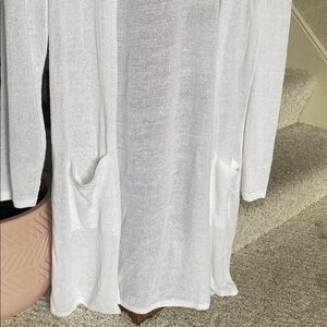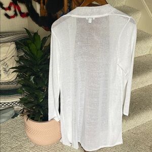 Elegant white linen blend knit midi cardigan. Ideal for layering. Great for a beach day or a casual lunch . Great pre loved condition size large