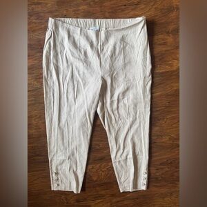 J Jill Linen Blend Cropped Pants Khaki Button Ankle Detail Side Zip NWT XL