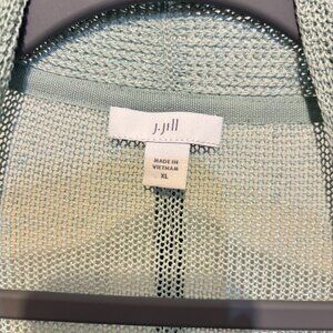 J. Jill Linen Blend Long Sleeve Open Front Cardigan Seaglass Green