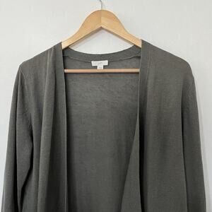 J. Jill Linen Blend Open Front Cardigan Size M Green Beachy Coastal Vacation