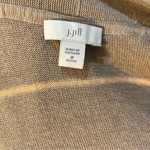 J. Jill Linen Blend Open Front Ladies Cardigan Women’s Tan Stripe Med Petite