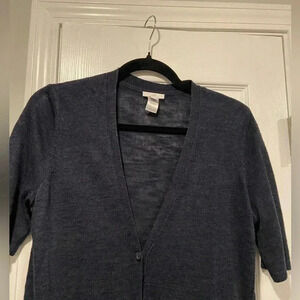 J. Jill Linen Blend Short Sleeve V Neck Button Front Knit Navy Cardigan Size XS