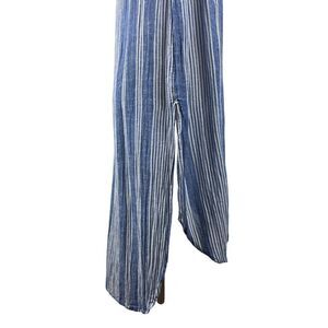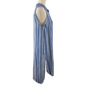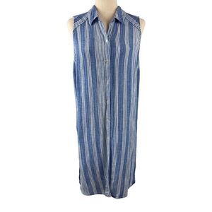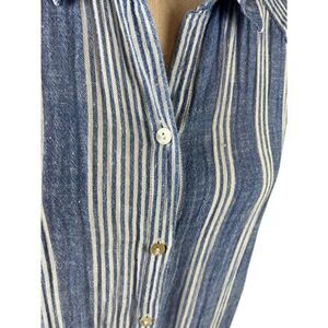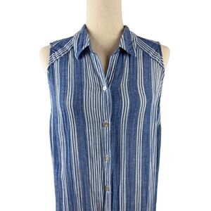 J. Jill Linen Blend Striped Sleeveless Button Up Tunic Top Blue Medium Coastal