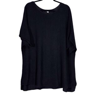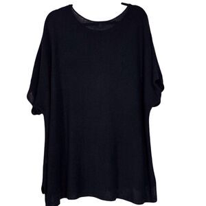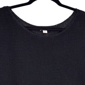 J Jill Linen Blend Sweater Top Boat Neck Black Short Sleeve Women XL Ribbed Knit