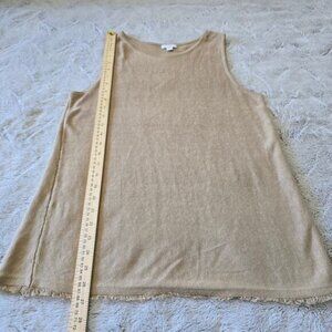 J. Jill Linen Blend TankTop XS Tan Natural Earth Tone Blouse Knit Fringe Hem