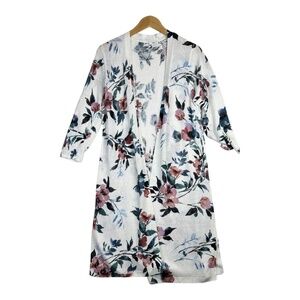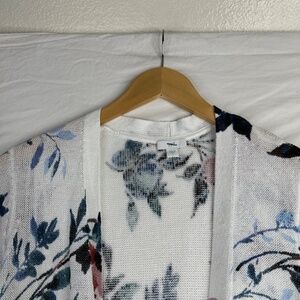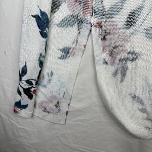 J. Jill Linen Blend White Floral Print Open Front Duster Cardigan Size Small