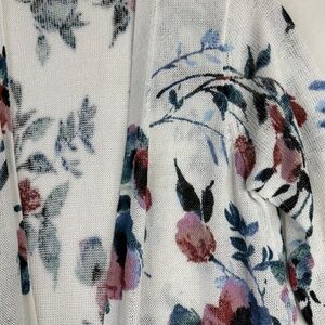 J. Jill Linen Blend White Floral Print Open Front Duster Cardigan