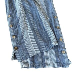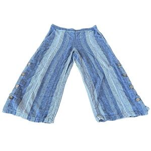 J. Jill Linen Blend Wide Leg Crop Pants Blue White Stripes Buttons Lagenlook Med