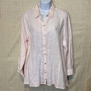 J. Jill Linen Button Up Shirt Pink & White stripes
