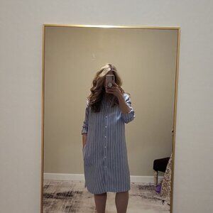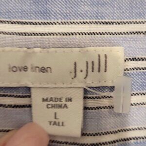 J. Jill Linen Front Button Shirt Dress Sleeves Roll up Small Collar Blue Size L