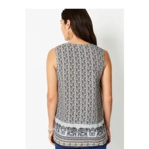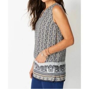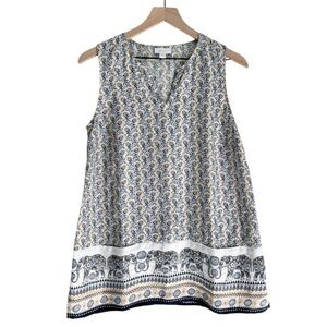 J. Jill Linen Love Linen Elephant Floral Sleeveless Tunic Top White Blue Small