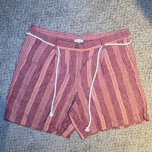 J. Jill - Linen Multi-colored Striped Shorts with Adjustable Belt