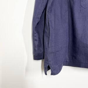 J. Jill Linen Oversized Navy Blue Pullover Long Sleeves Top Pockets Sz XS Lined
