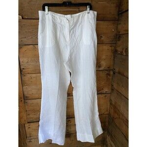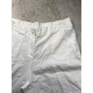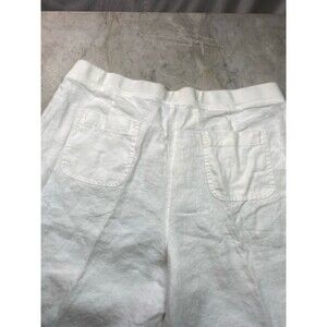 J Jill Linen Pants Women’s L White Pockets Stretch Waist Wide Leg Beachy