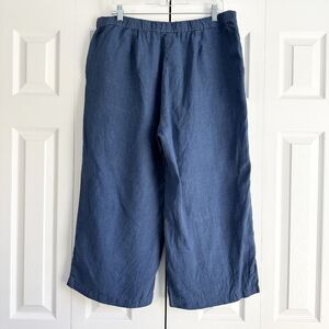J. Jill Linen Pants Womens Size L Blue Wide Leg Cropped High Rise 100% Linen