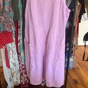 Super cute pink linen shift dress by J. Jill. Perfect for summer with pocket detailing on the front.