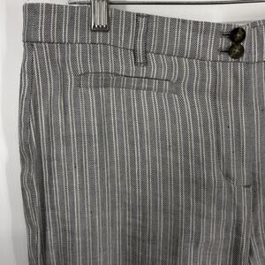 J Jill Linen Stretch Pants Size 12 Flat Zip up Light Blue Stripe straight Leg