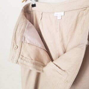 J Jill Linen Stretch Straight-Leg Cropped Trousers Pants Size 14 Flax Beige Tan